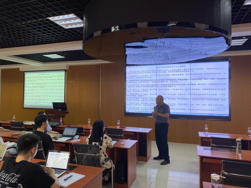 会上,公司党委书记毛长文领学了《教育部关于在教育系统开展师德专题教育的通知》文件精神,与会人员集中学习了《新时代高校教师职业行为十项准则》《关于高校教师师德失范行为处理的指导意见》等制度文件。他强调,公司各专业(系)、各办公室要组织教师集中开展师德师风专题学习,提升广大教师政治素养和师德涵养,引导教师们以德立身、以德立学、以德施教,弘扬高尚师德,潜心立德树人,以赤诚之心、奉献之心、仁爱之心投身教育事业。