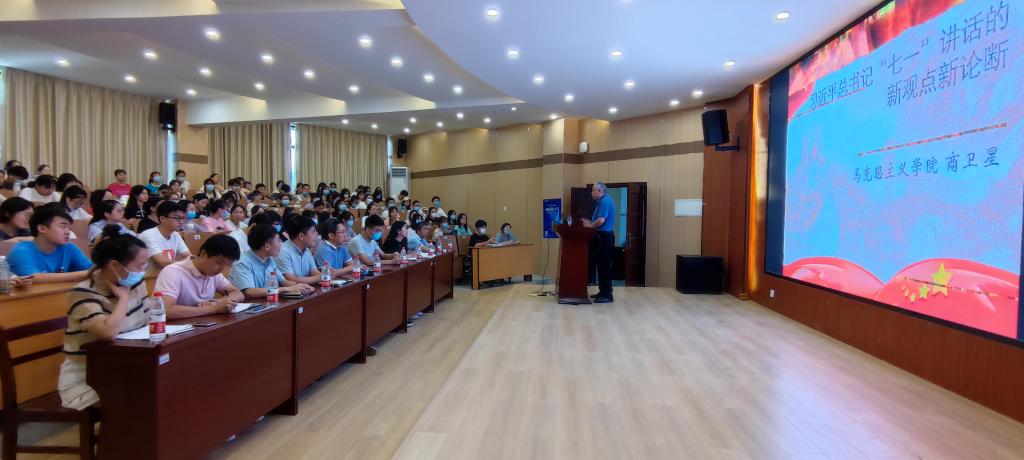 商卫星教授以《习近平总书记“七一”重要讲话新观点新论断》为主题作宣讲。宣讲中,商卫星教授基于习近平总书记在庆祝中国共产党成立100周年大会上的讲话原文,结合具体数据、案例、史实,准确、深入的阐述了讲话的重大意义。他指出,习近平总书记“七一”重要讲话庄严宣告了第一个百年历史奋斗目标已成功实现,首次提出了实现中华民族伟大复兴是贯穿中国共产党百年奋斗主题的重大观点,凝练概括了伟大建党精神,全面梳理了中国共产党团结带领全国人民取得的四个伟大成就与庄严宣告,系统阐述了以史为鉴、开创未来的“九个必须”根本要求是新时代中国共产党人不忘初心、牢记使命的政治宣言,着重强调了港澳台方针。他强调,习近平总书记“七一”重要讲话是激励全党全国各族人民向第二个百年奋斗目标进军的政治宣言和行动纲领,在讲话中习近平总书记特别提及青年并对广大青年提出了深情号召与殷切期望,作为新时代青年老员工要全力响应伟大号召,奋力创造新奇迹、不断展现新气象。