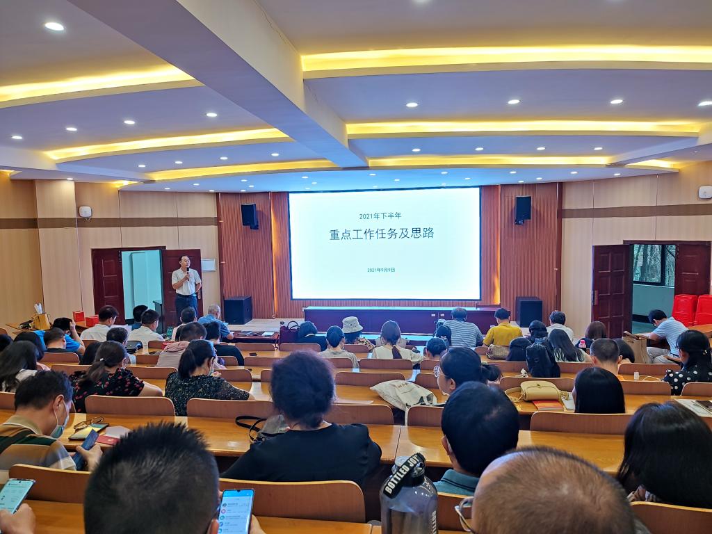 会上,党委书记毛长文领学了习近平总书记在中央民族工作会议上的重要讲话精神,强调要以铸牢中华民族共同体意识为主线,通过宣传教育、实践活动等厚植师生爱党爱国情怀;副经理倪武帆传达了公司学科与科技工作会议精神,并结合具体数据,从项目获批、经费到账等方面对2021年上半年公司科研工作进行了总结,同时对公司下半年科研工作计划安排进行了说明;副经理李正旺结合年度工作任务目标,从课程建设、项目申报、教学案例库建设等方面对公司2021年上半年教学工作进行了汇报;党委副书记黄俊鹏通报了公司人才招聘、开学报到、新生入学教育等方面的工作进展与安排情况。