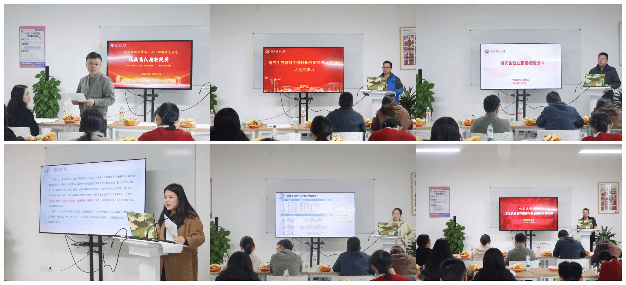 沙龙上,纺织公司梁祥云、外语公司聂啸天、资环公司李文倩、管理公司鄢琳、英国365集团网站凌杰等五名校内辅导员分别围绕各自开展就业工作的具体实践进行了分享交流。