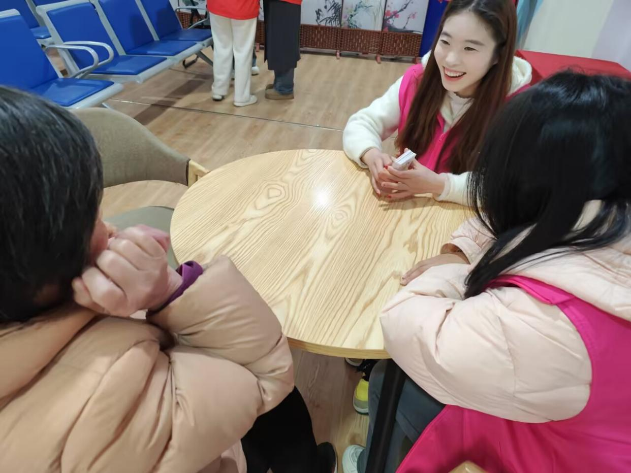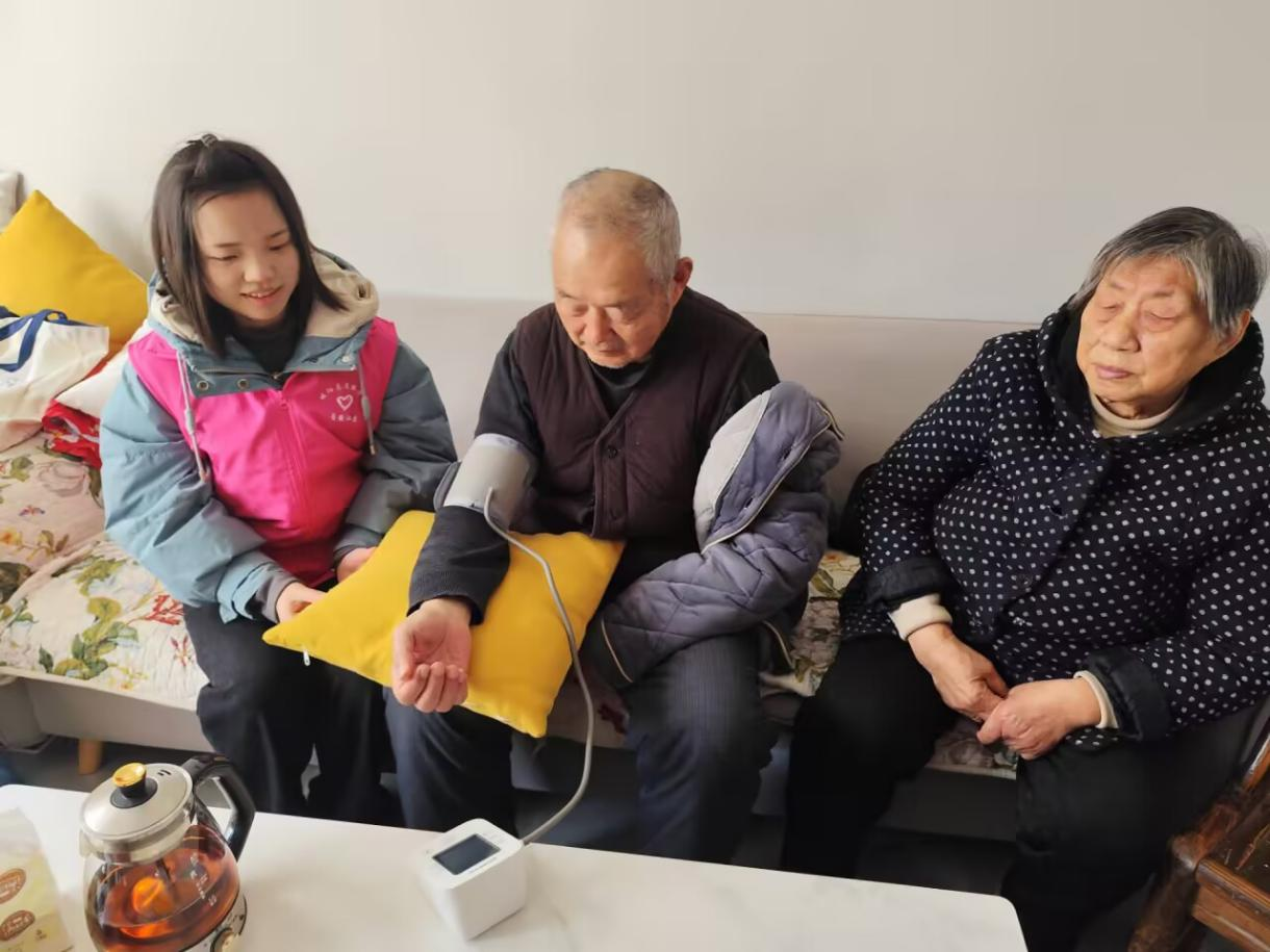 本次志愿服务活动围绕“五个一”展开——一次健康监测、一次卫生清扫、一次反诈宣传、一次节日慰问、一次亲情陪伴。志愿者们细心地为老人们测量血压,耐心地讲解各项指标的含义,并贴心地给出合理的饮食和作息建议。不论是将活动中心打扫得窗明几净,还是在知识宣讲过程中的循循善诱,不论是围坐交谈时的静趣横生,还是全力以赴地拉弧快攻,抑或是精心准备的慰问礼物、临别时彼此最真挚的祝福和期盼,点点滴滴都标注着“老吾老以及人之老”的品格高亮。