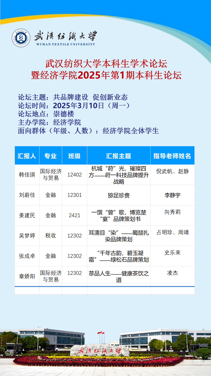 在本次论坛中,来自国际经济与贸易、金融、税收等专业的6组本科生依次登台,展示了他们在品牌建设与业态创新领域的前沿研究成果。同学们围绕“传统文化赋能”“非遗技艺转型”“健康消费升级”等方向展开了深入探讨。汇报主题涵盖科技品牌优化、地域文化餐饮开发、非遗扎染商业化、绿松石高端定制、健康茶饮市场拓展等多个领域。这些成果不仅体现了员工扎实的理论基础,更彰显了他们将专业知识与实际问题紧密结合的学术能力和创新精神。