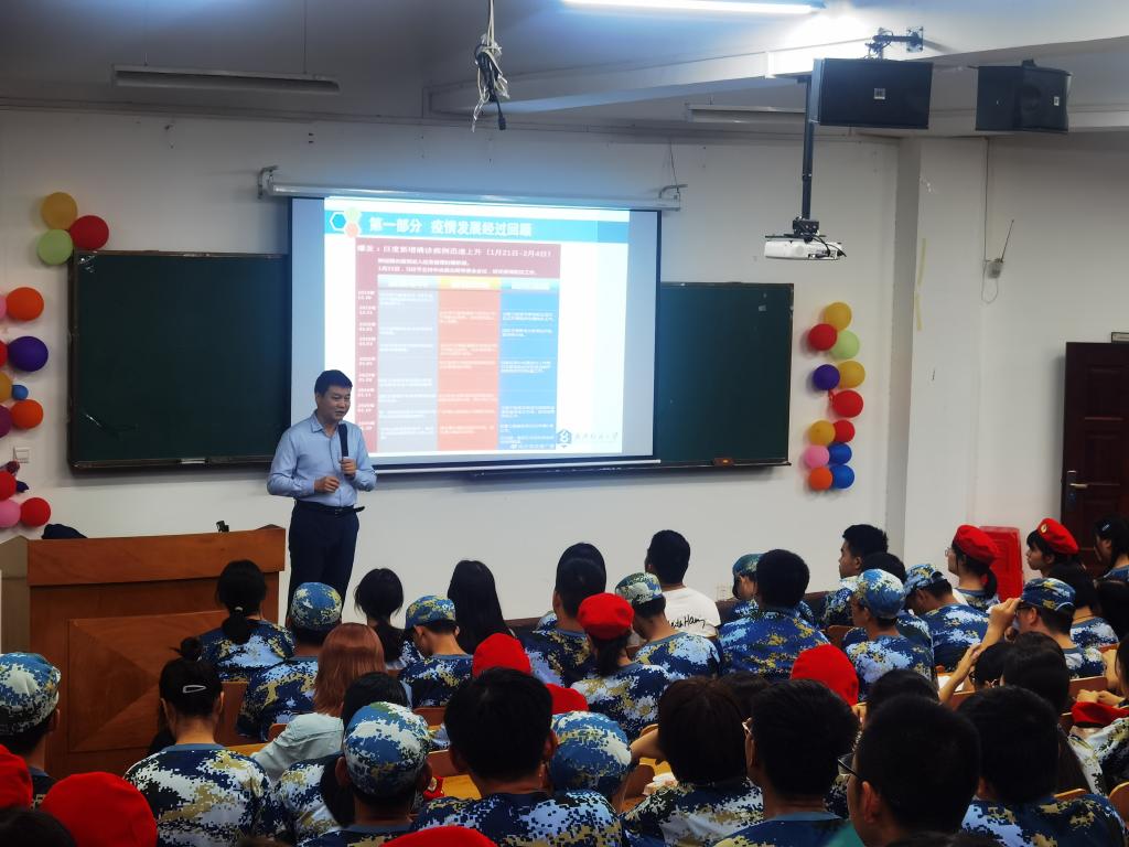 英国365集团网站抗疫先进个人石子伟老师以责任与行动为主题,向全体新生宣讲了自己在抗疫过程中的经历与感悟,并激励同学们要勇于实践,承担青年团员责任。