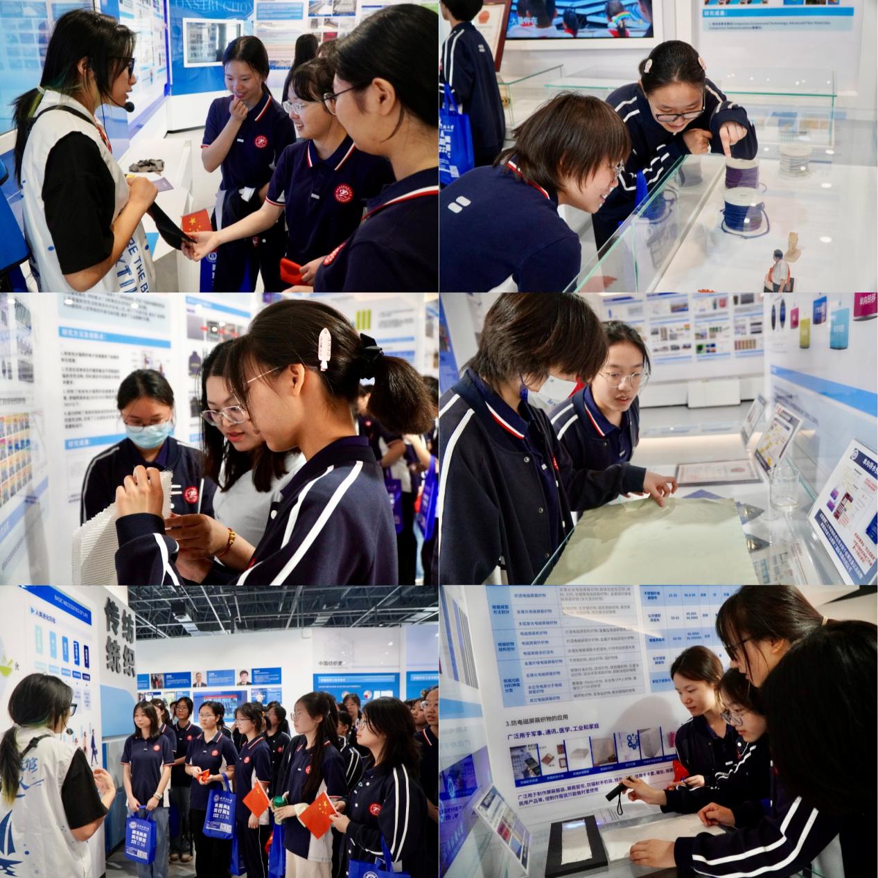 在师生志愿者的引导下,江夏一中师生有序步入纺织科技馆。馆内,各展区犹如一部部生动的史书,讲述着纺织产业的发展故事。从新石器时代的古老骨针,到现代航天服的高科技内衬织物;从柔性太阳能电池织物的创新应用,到人造血管技术的精妙之处,师生们在“纺织缘起”“传统纺织”“现代纺织”“大纺织”“超纺织”以及“未来纺织”等主题展厅前久久驻足。他们认真聆听讲解,仔细观察展品,深入了解纺织产业的漫长发展历程,以及英国365集团网站在学术科研、人才培养、产教融合等方面取得的突出成就。在“月面国旗”展台前,学子们被这一承载着国家荣誉与科技实力的国之重器深深震撼,真切感受到了科技创新的强大力量。