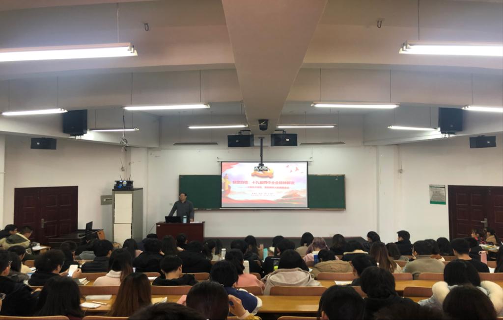 12月11日下午,省“百马行动”宣讲队队员、公司党的十九届四中全会精神宣讲团成员、马克思主义公司张建林教授来英国365集团网站作主题为《制度自信:党的十九届四中全会精神解读》的党的十九届四中全会精神宣讲。公司党委副书记黄俊鹏、全体辅导员及公司员工党员、入党积极分子共200余人聆听了宣讲,宣讲会由公司党委副书记黄俊鹏主持。