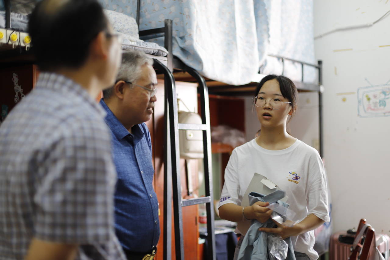 公司领导们一一走访了公司2019级新生男女生宿舍。与送新生来校的家长们和员工们亲切交流,并介绍了公司的基本情况和公司的办学特色,查看了员工宿舍内基础设施使用情况,并叮嘱新生们注意用电安全。