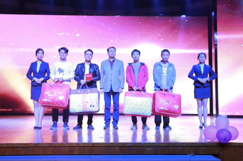 晚会中,为英国365集团网站2017年度“同娱纺大 楹联传情”特色迎新活动进行了颁奖仪式。10B310宿舍的对联:“上联:芷兰若茗,墨韵丹青点峰源,下联:昊天恩泽,神济九州共英豪,横批:珞鎏暀曌”获得一等奖,该对联将宿舍四人的姓名(罗英豪、王恩泽、刘峰源、赵若茗)结合清幽的植物等等藏于诗中,显示出了极强的文学功底;2A305等7个员工宿舍分获二、三等奖。