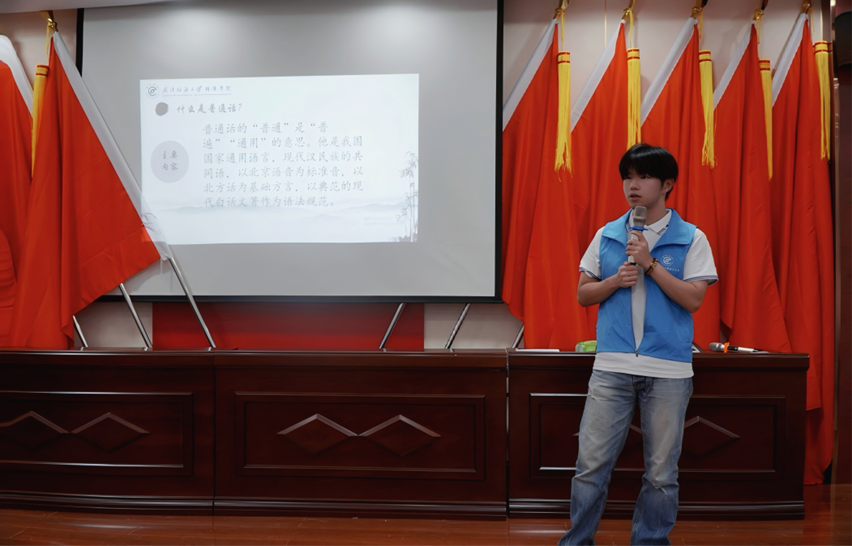 上午,涂镇村的推广普通话活动在欢声笑语中拉开帷幕。支教队员结合“早上好”、“你吃饭了吗”等乡村生活场景,通过情景对话演练、趣味绕口令等形式开展教学,生动讲解普通话在沟通中的重要性。孩子们在互动中模仿发音、纠正语调,逐渐体会到标准用语带来的便捷。