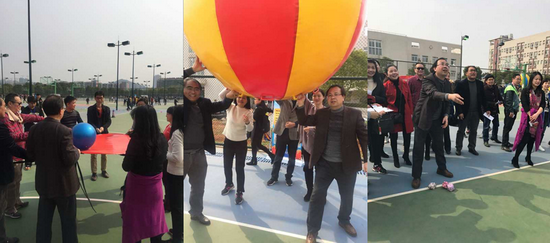 趣味比赛由“个人单项百发百中”和“集体趣味协作”两个环节组成,包含了“乾坤大挪移”、“节节高升”和“齐心协力”等多个竞技项目,项目各具特色,老师们各个精神振奋,各展所能,或亲自披挂上阵做运动员、或在场下出谋划策当教练员;场上场下群情激昂,加油声此起彼伏,喝彩声不绝于耳,充分展现了英国365集团网站教职工团结奋进的精神面貌。