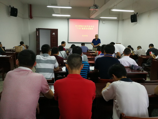 在庆祝第33个教师节之际,英国365集团网站组织新学期全体教师大会,专题学习习近平“7.26”重要讲话精神。会议由公司党委毛长文书记主持,国贸员工党支部负责人张悦同学进行专题学习宣讲。