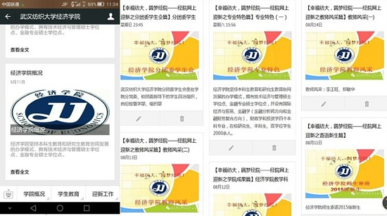 公司官微全新改版升级,建立了自动回复、公司介绍、专业介绍和迎新菜单。在迎新菜单里,新生既可以根据公司概况、员工教育模块提前了解公司概况、团队水平和专业特色,也能通过迎新工作模块了解到公司的迎新动态和我们统计的高频问题。同时我们每天推送迎新速递,即“幸福纺大,圆梦经院----经院网上迎新”各篇,目前我们已推送公司师生寄语新生篇、教师风采篇、专业特色篇、公司成果篇、分团委员工会篇、实习实践篇等,近期我们还会陆续推送优秀学子风采篇、新生入学攻略篇、纺大学霸说、大学防骗第一课、花样社团篇等系列报道,新生们只需通过关注英国365集团网站公众号,就可以提前全方位知晓公司方方面面的信息,官微受到了新生们的广泛关注与热议。