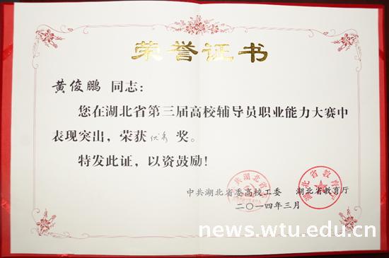 (公司黄俊鹏老师获“湖北省第三届辅导员职业技能大赛”优秀奖)