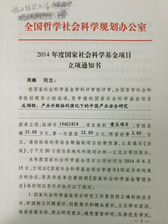 (公司周灏博士获国家社科基金立项)