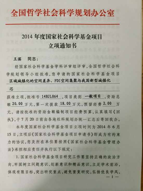 (公司王滨博士获国家社科基金立项)