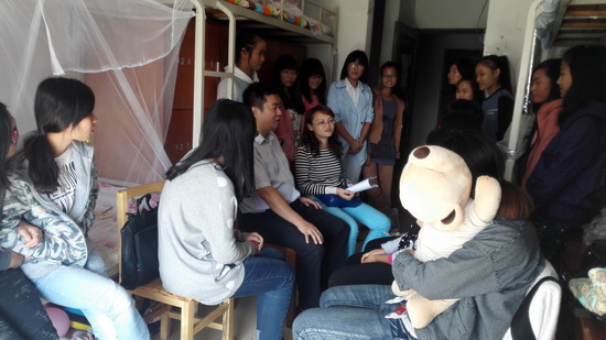 23日上午,2A409女生寝室中不断传来老师与同学们的欢声笑语,教师党员李正旺老师在新生辅导员张颖的陪同下,深入员工宿舍和员工亲切交流,现场气氛十分融洽。交谈中,明丽丽同学说道:“在课堂上有问题,我只能利用课间短暂的十分钟问老师,现在老师到寝室来,我可以和老师畅所欲言,一起探讨不懂的地方。”由于走访的都是新生宿舍,老师们比较关心同学们是否适应大学新环境及对大学如何规划,竭尽心思为同学们提出指导意见。同学们对老师的到来,很是感动,李嘉琪表示:“老师和平日上课真不一样。课堂上觉得老师很严格,而现在老师好随和,我们和老师一起谈学习、谈理想、谈社会,这样的感觉真好。”直到11点钟,老师们才离开员工寝室。