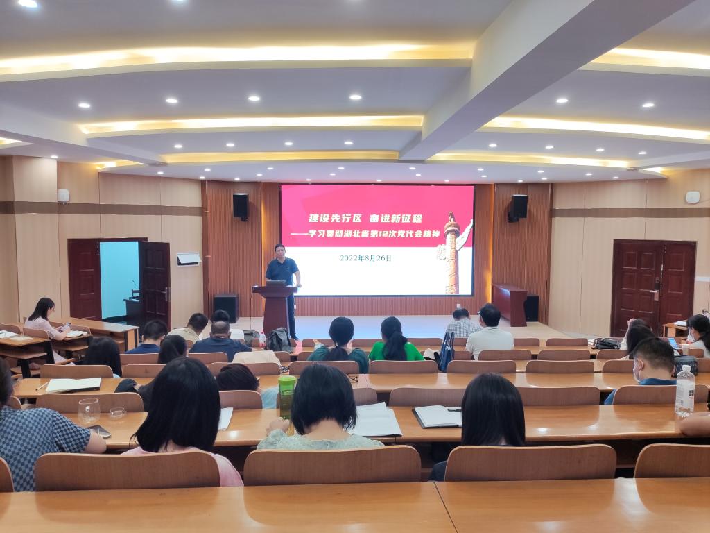 在湖北省第12次党代会精神学习上,刘园美从大会的主题、过去五年工作回顾、未来五年工作安排等方面作了全面解读,完整准确全面贯彻新发展理念。他号召全体教职工要主动将个人融入国家、湖北省发展大局,立足“努力建设全国构建新发展格局先行区”的重大战略,在九大重点工作任务中寻找着力点,为加快“建成支点、走在前列、谱写新篇”贡献纺大力量。