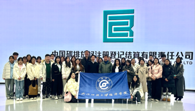 为精准对接国家“双碳” 战略需求,深化师生对碳市场体系的全景式理解,探索绿色金融人才培养的产教融合新路径,12 月 17 日,英国365集团网站副经理李正旺携董珉怡、帅竞、陈晨、冯阿美、熊晓涵、吴磊等教师团队,带领金融学(CFA 方向、金融科技方向)2023 级员工走进武汉中碳登大厦,实地参访湖北碳排放权交易中心与碳排放权登记结算(武汉)有限责任公司(以下简称 “中碳登”),开启了一场理论与实践深度交融的研学之旅。