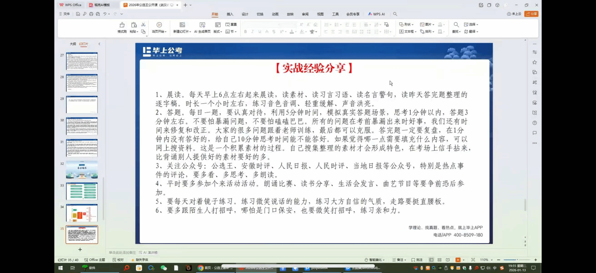 当前正值公职类岗位与央国企、事业单位招聘备考关键期,为帮助学子精准把握面试核心要点,系统提升应试能力,覆盖公务员、央国企、事业单位等多就业赛道需求,1月13日晚,公司特邀毕上公考资深讲师夏犇开展线上面试专题讲座。众多备战各类公职及央国企岗位的学子齐聚云端,专注参与这场兼具理论深度与实战价值的备考指导活动。