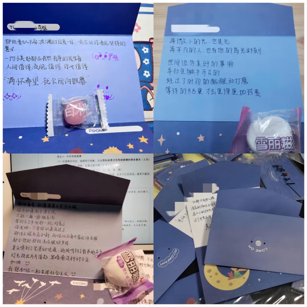 12月20日,公司组织为留校考研员工分发了精心准备的“考研暖心助力加油包”,“暖心助力加油包”中含有:“暖手更暖心”——暖水袋、心想事“橙”——橙子、文星高“罩”——防护口罩、“研”途“经”彩——手写明信片、百事可乐等,处处都体现着“实用”与“用心”,饱含着公司对考研员工的深情祝福。公司为此次慰问活动做了充分准备工作,提前联系进行了物资采购,并号召公司领导、辅导员、学弟学妹们为考研员工亲笔书写了祝福明信片。在尽量减少接触、符合防疫要求的前提下,有序组织了“暖心礼包”的发放工作。