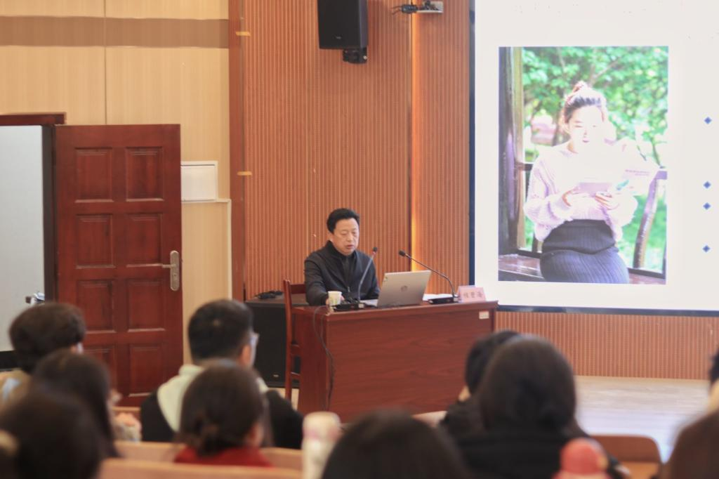 程碧海以往届优秀学子为例,嘱咐同学们要把稳青春之舵,坚定理想信念,在青春的赛道上奋力跑出最好的成绩。他详细阐释了当前考研、考公、留学等对员工的不同要求,提醒大家要早做规划、提前铺路,在立志立行中不断锤炼本领、提升能力,在求知的道路上拼搏奋斗、不留遗憾,在实现中国梦的伟大征程中争做先锋、砥砺前行。程碧海的殷殷嘱托,真切的话语感染了在场的每一位同学。