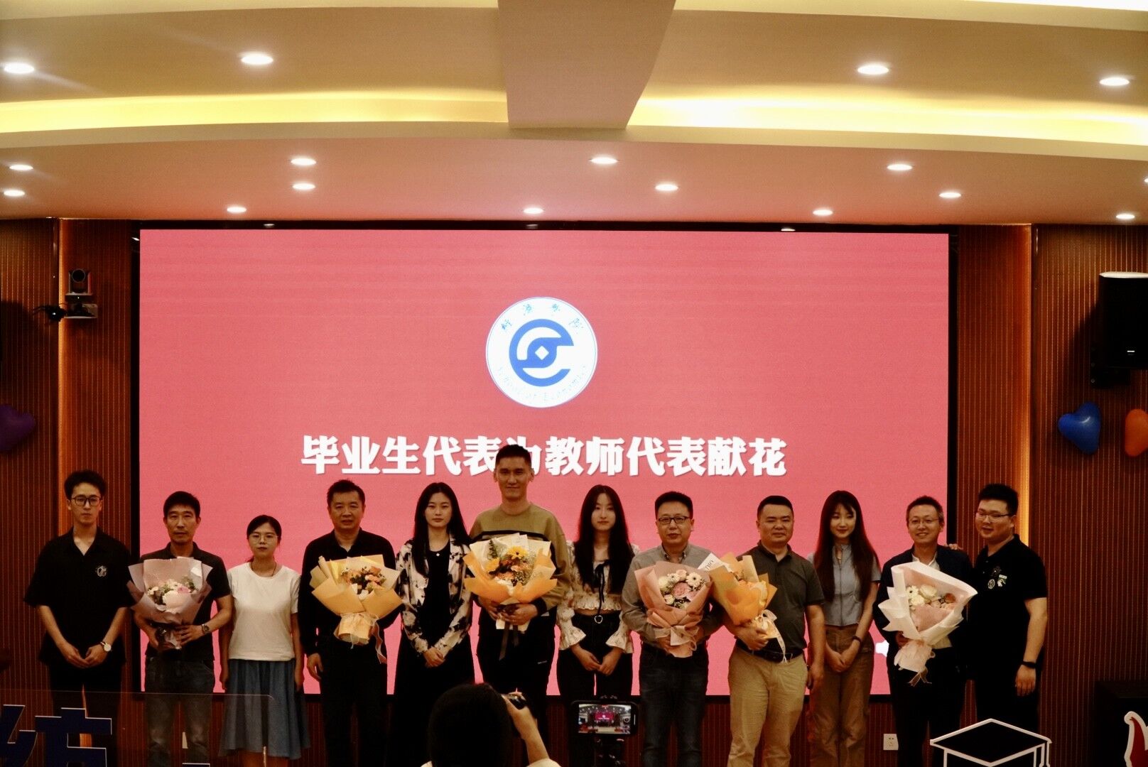 典礼在韩高翔的演唱《老男孩》,夏光悦的《这世界有那么多人》中开场。话剧社贡献了一出经典话剧《成长视觉》。此后紧张刺激的抽奖活动更点燃了现场的气氛。《如约而至》《刻在我心底的名字》《Ring the Alarm》《solo》《凤凰花开的路口》……魔术、歌舞,精彩的表演引得现场高潮不断,掌声迭起。在优秀毕业生献花教师的环节中,员工们手持鲜花,真挚地向教导了自己四年的老师致谢。回忆往昔,寄情未来,会场气氛宁静而温馨。不少员工表示,这是一场意义颇深的典礼,他们会牢记公司的教导和嘱托,刻苦努力,创造出属于自己的美好未来。