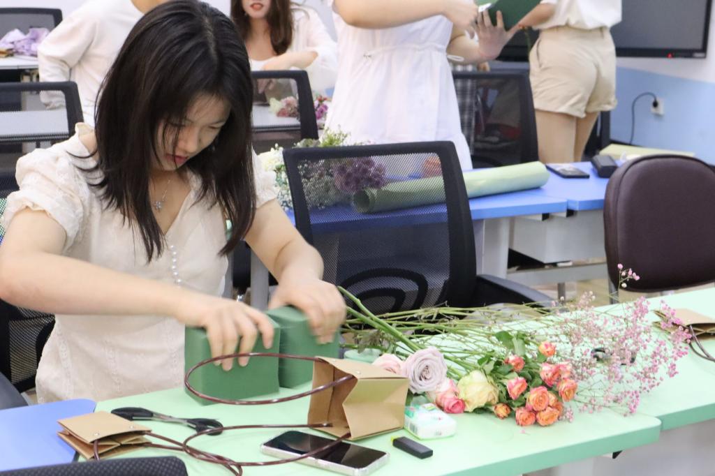 为缓解员工学习压力,提升员工生活品位和艺术修养,丰富员工精神文化生活,公司于5月30日下午在崇德楼305开展“指尖优雅,花漾绽放”花艺沙龙活动。