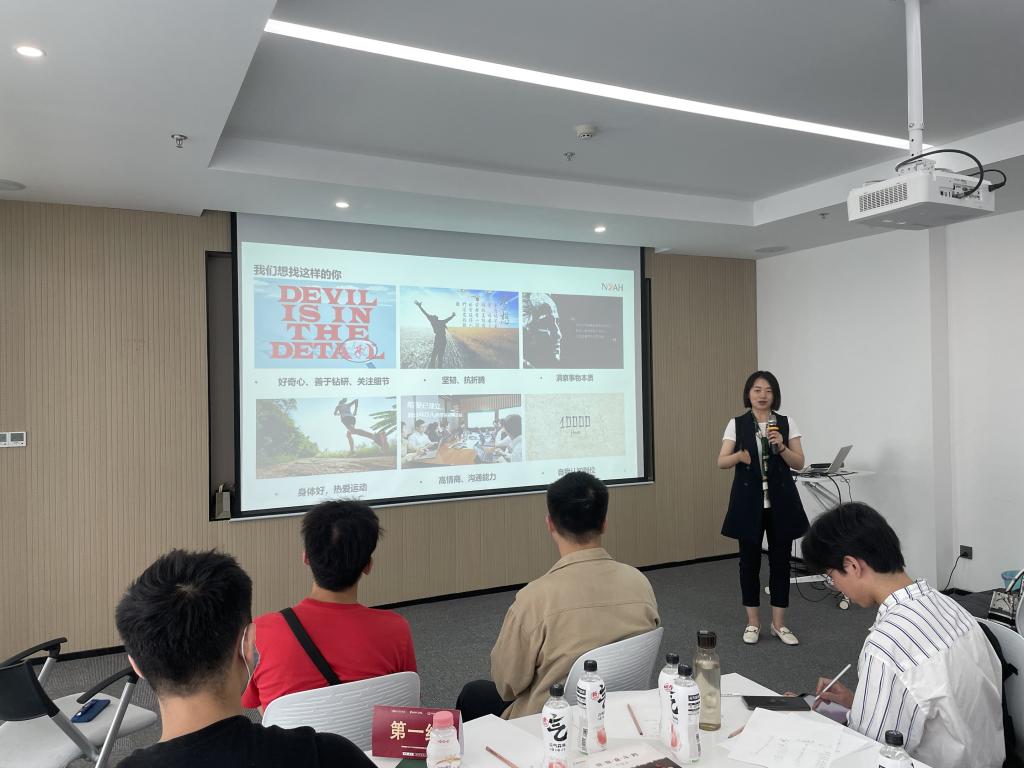 互动完毕后是实训营环节,采用无领导小组讨论进行。主持人老师幽默风趣的主持,同学们热火朝天地讨论,再加上对于金融行业深厚的知识积累,让同学们在无领导小组面试活动中更加明确自己未来的职业规划。诺亚财富中西大区人力资源总监佘莎对各小组表现进行点评,并讲解金融行业人才需求和标准,帮助同学们认识到自己的发展方向,并为之付出努力。