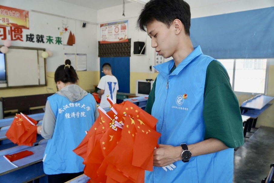 随着授课深入推进,课堂开展主题为“绘新貌,祖国变化知多少”的绘画活动,鼓励孩子们用彩笔画下自己心目中祖国最美的样子,一座座高楼大厦、一片片绿色山水、一个个飞机汽车……在支教队员的鼓励引导下,一幕幕壮丽的场景跃然纸上。简单的线条绘不完祖国的巨大变化,却能极大地鼓舞孩子们的民族自信心和民族自豪感。支教队员还把纸浆画带入课堂,让孩子们制作五星红旗、党旗。“我要好好读书!”“我要成为一名共产党员。”“我要走出大山,去看看外面的世界。”简单的话语,却带着孩子们最真诚最美好的期许。“90分钟虽然不长,但是希望能够在孩子们心中种下爱党爱国的种子。”支教队员彭建凯说道。