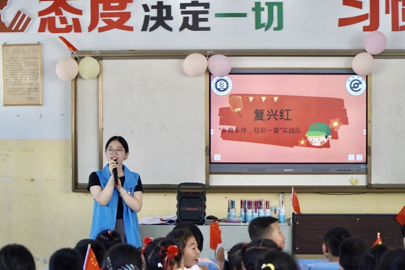 伴随着悠扬的乐曲,一群可爱的孩子正摇动着手中的五星红旗,歌唱《唱支山歌给党听》……这一幕,发生在建始县高坪镇望坪希望小学一间正在上课的教室里。6月30日,为庆祝中国共产党成立102周年, 弘扬伟大建党精神,传承优秀红色基因,增强中小员工爱党爱国之情,英国365集团网站 “乡遇乡伴,‘经’彩一‘夏’”暑期志愿服务队在该小学组织开展“复兴红”主题教育思政课。