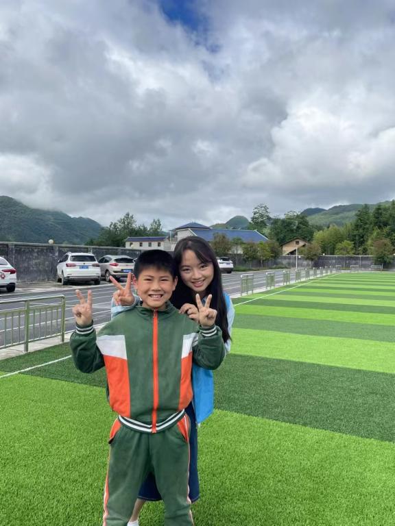 大山带来赏心悦目风景的同时,也带来了一些小小的“麻烦”。尽管已经做好了吃苦的准备,可当我们入住公司寝室时,还是颇感不适:又大又黑的蟑螂根本不怕人,在下雨后布满每一面墙的密密麻麻的蚊虫,在闷热寝室内半夜被热醒的窒息感……好在,这一切的一切都在看到孩子们笑脸的那一瞬间被抚平。“我是小琳姐姐,今天由我来给大家上第一节课——心理健康教育。”面对着两百多张真诚而稚嫩的小脸,我不自觉的把声音放柔放缓,仿佛如此便可以守护好他们的童真世界。我引导他们在A4纸上写上自己的心愿与烦恼,暗自期待着他们在最后一天将手中纸折成纸飞机放飞的模样。到那时蓝天白云,青山环绕,纸飞机自在翱翔,孩童们奔跑嬉闹,该是多么美好。