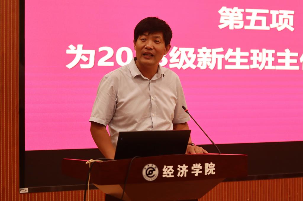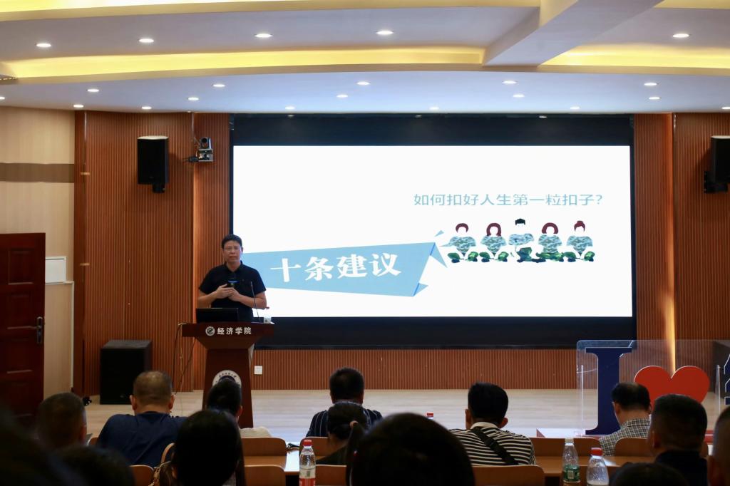 新生辅导员汪伦介绍了年级及日常管理情况,使家长对新生班主任和孩子的大学日常生活有了一定了解,对孩子未来的生活更加安心、放心。