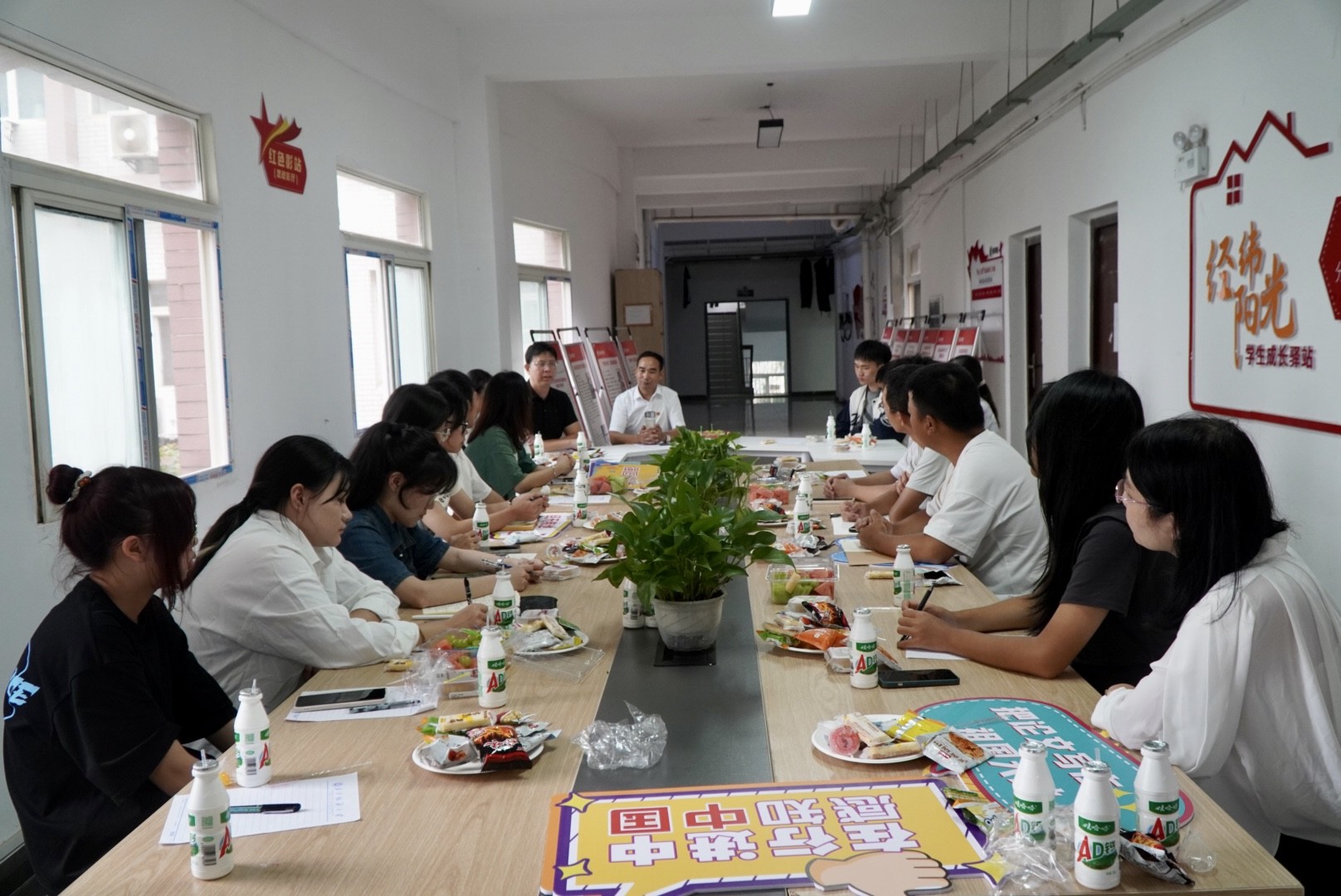 “池塘边的榕树上,知了在声声叫着夏天......”在吉他的和弦声里,在少年的歌声中,公司第一次职业讲堂于9月28日下午在12栋“一站式”员工社区拉开序幕。正值“双节”前夕,学工部、公司党政班子成员、辅导员们与留校员工一同话发展、溯见闻、谈成长。
