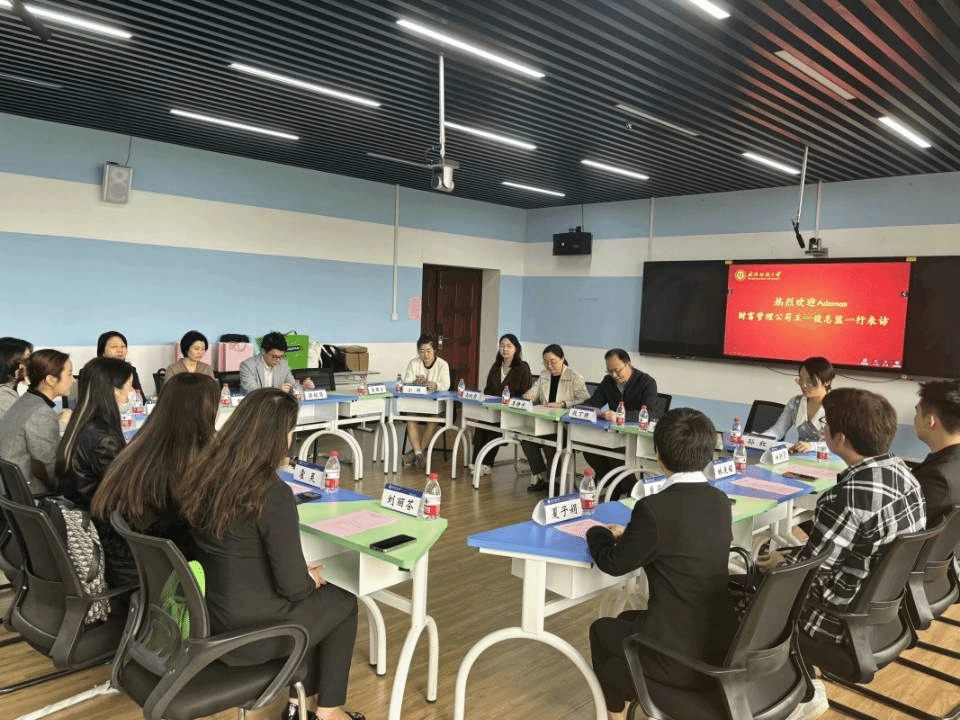 段丁强在会上对Adamas财富管理公司一行的到访表示热烈欢迎并指出,员工研学交流国际化是顺势所趋,希望今后能够多交流、常交流,共同积极探讨高校与企业的合作模式。王一俊表示,经此一行,她深切感受到公司对此次座谈会的重视。她以自身的工作经历和个人见解,详细介绍了公司现状、香港招生情况和最新升学政策,同时分享了去年员工代表在香港的研员工活,期望同学们继续通过香港这个桥梁,与世界接轨。刘园美详细介绍了公司的办学定位、办学成效以及员工就业升学三个重要方面,表示公司一贯注重员工综合素质的培养,坚持以就业为导向,经过多年的发展,公司为财税、金融、国贸等社会经济领域输送了一大批高素质复合型人才。