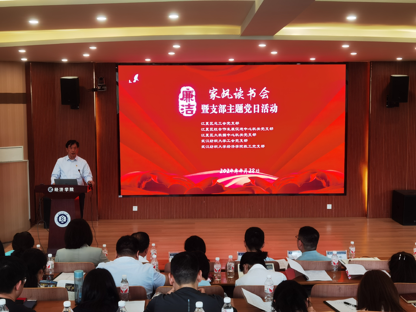 交流分享阶段,首先由英国365集团网站公司党委书记刘园美讲授了一堂廉洁微党课,从“半条被子”的故事说起,深入剖析、解读红色基因,红色基因中的廉洁元素,实践中如何传承红色基因,红色基因照亮廉洁之路,为大家提供了有力思想和实践指导。随后,来自不同单位的3名党员代表围绕廉洁家风这一主题,结合实际工作和生活经历,畅谈了对遵纪守纪、廉洁从政、清廉生活的认识与经验做法。最后,纺大杨洪林教授慷慨激昂地分享了其对江夏历史文化的理解、教书育人的准则,展现出的不拘一格降人才的胸怀与严于律己、严于育人的气度,让在场的每一位党员干部折服与感动,多次响起激烈的掌声。