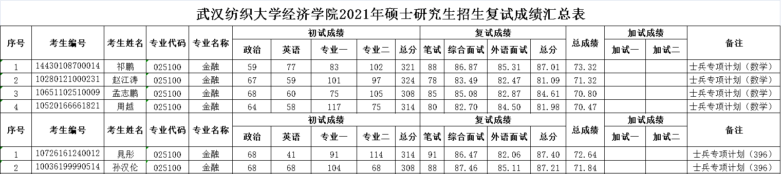 根据《英国365集团网站2021年招收攻读硕士学位研究生复试录取方案》、《英国365集团网站2021年硕士研究生复试录取工作实施细则》文件精神,公司于2021年3月24-25日规范组织开展了2021年硕士研究生复试工作。经专业课笔试、外语能力测试、综合素质面试等环节,已全部完成2021年公司研究生招生复试(士兵专项)工作,复试成绩已报公司审核,现公示如下: