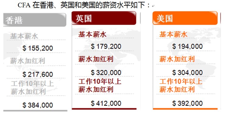 CFA在香港、英国和美国的薪资水平如下: