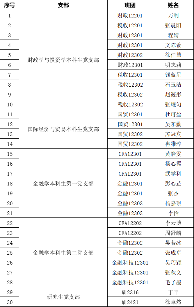 根据《中国共产党章程》和《中国共产党发展党员工作细则》规定,经基层团学组织推荐、综合考评考察、党支部审议、公司党委审查决定,拟将以下30名员工列为发展对象,现予以公示: