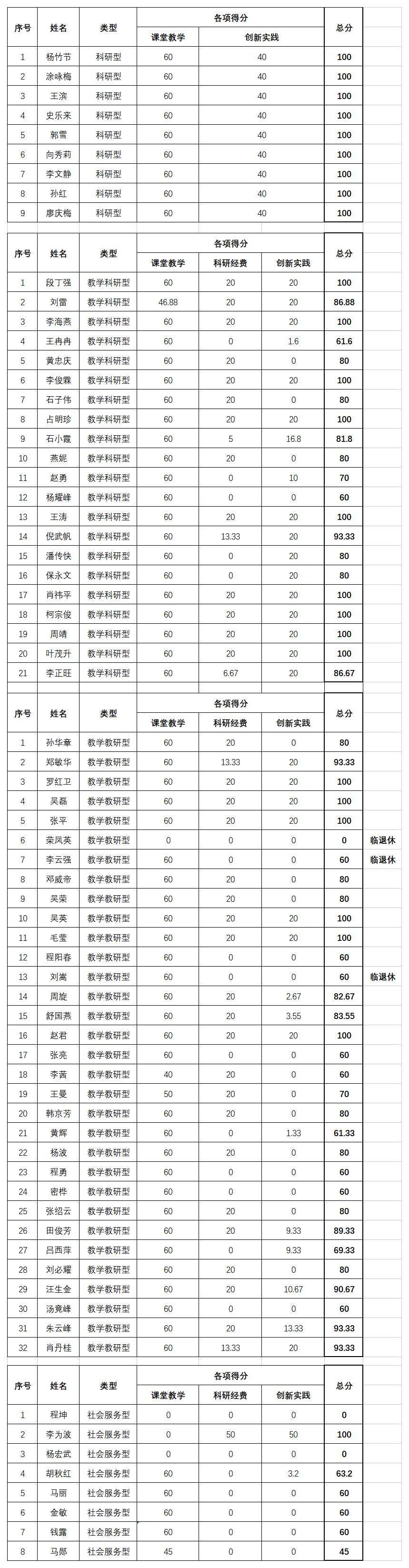 根据公司2022年颁布的《英国365集团网站教科研业绩考核激励管理办法》,通过对公司专职教师2022年度完成的课堂教学、科研经费和创新实践情况的统计计算,现将考核总分进行公示。
