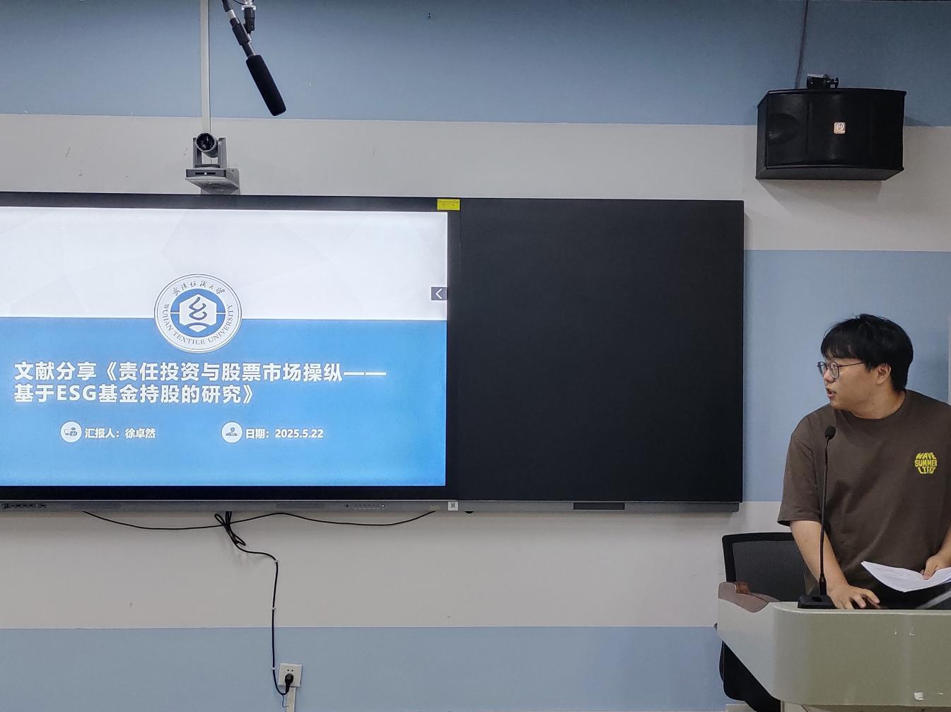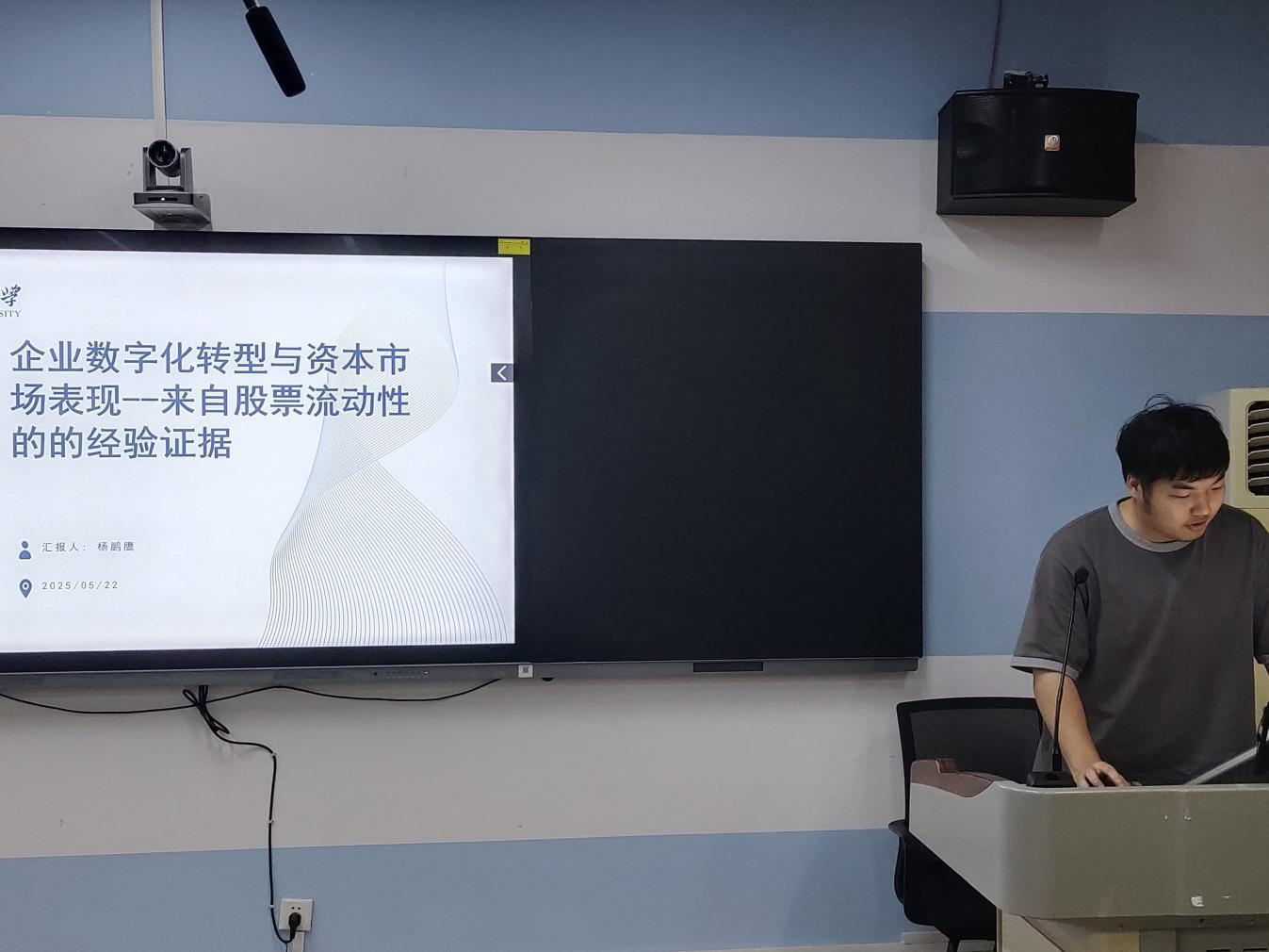 在本次论坛中,五位主讲人分别围绕其近期研究成果进行报告。张斌 斌同学以《银行数字化转型对小微企业自主创新的影响——兼论数字金融 的协同作用》为题,基于实证分析探讨银行数字化转型与数字金融协同助 力小微企业自主创新的路径与效果。徐卓然同学以《责任投资与股票市场 操纵——基于 ESG 基金持股的研究》为题,结合 ESG 基金持股数据,实证 分析责任投资对股票市场操纵行为的影响机制与抑制效应。刘佳琪同学以《环境规制实现了绿色技术创新的“增量提质”吗——来自环保目标责任 制的证据》为题,基于环保目标责任制实践数据,实证检验环境规制对绿 色技术创新“增量提质”的实际影响与作用机理。杨鹏鹰同学以《企业数 字化转型与资本市场表现——来自股票流动性的经验证据》为题,基于股 票流动性数据,实证分析企业数字化转型对资本市场表现的影响路径与实 际效应。蔡猛同学以《数字经济对居民消费升级影响的实证研究》为题, 运用数据模型与实证分析,探究数字经济驱动居民消费升级的内在机制与 实际效果。