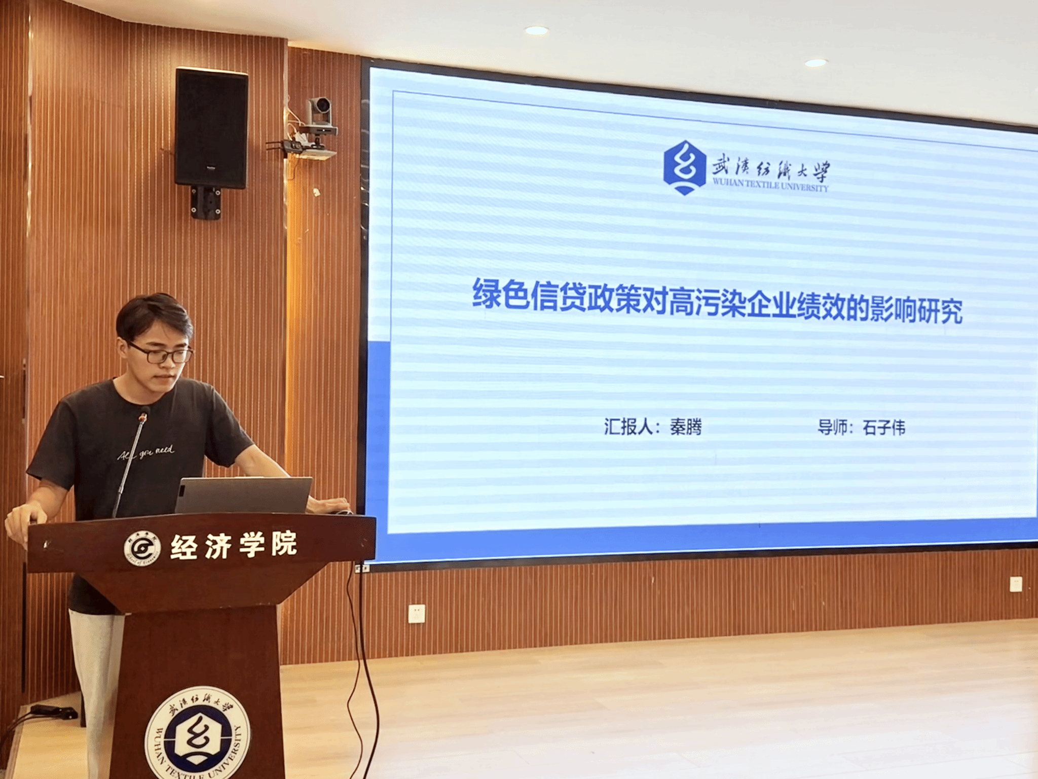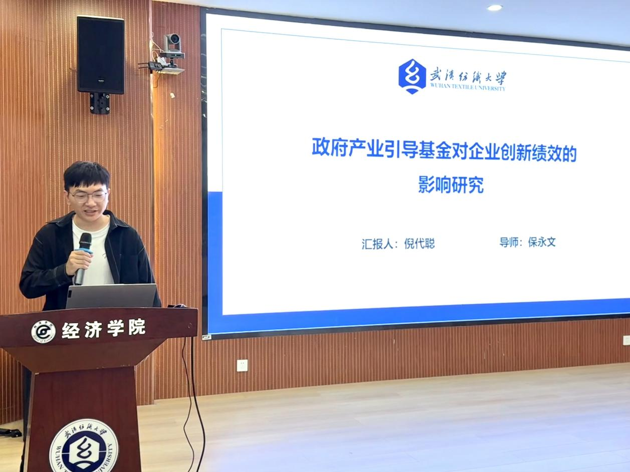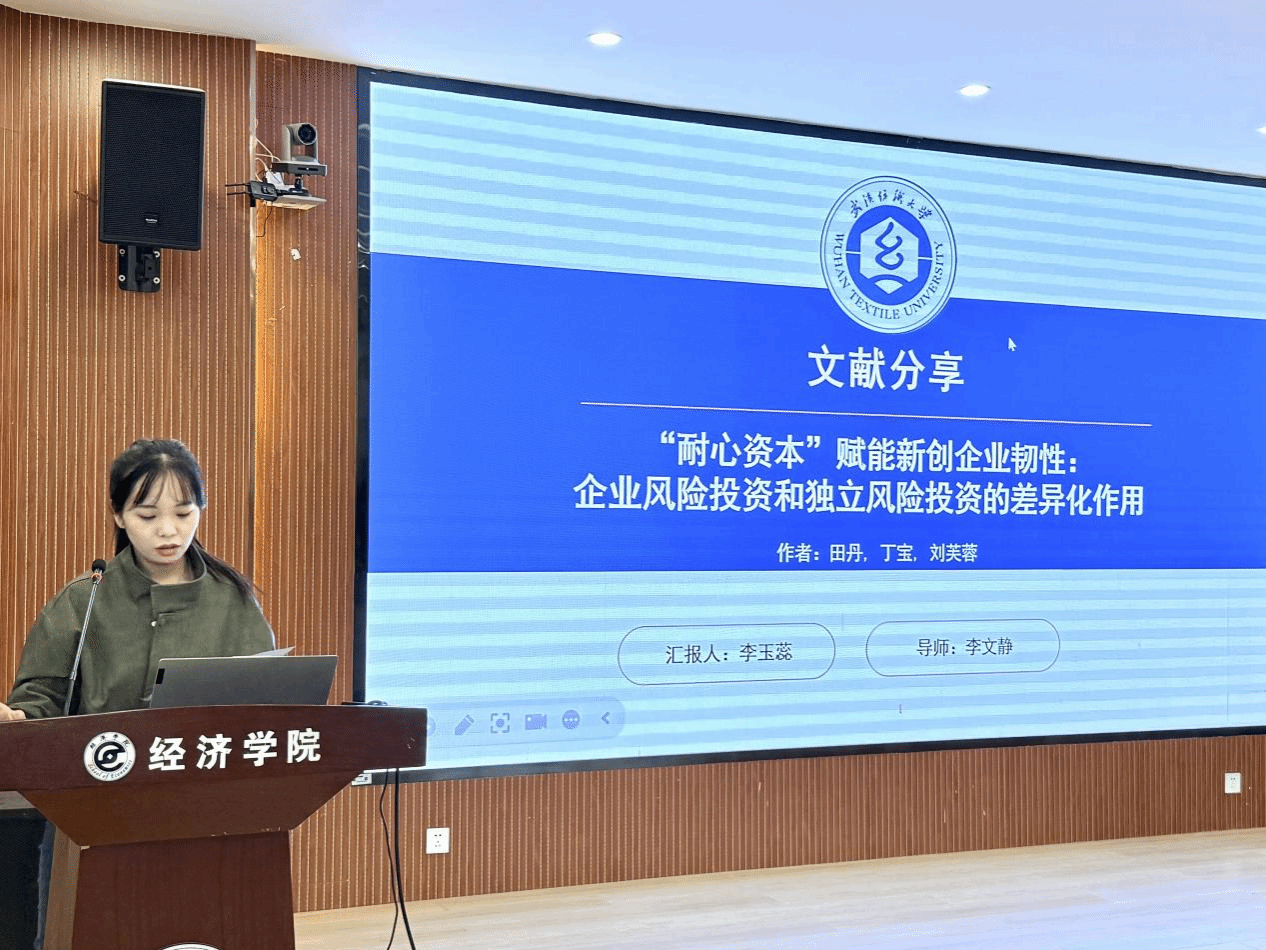 在论坛分享环节,五位主讲人围绕实践调研与学术研究主题展开精彩报告。杨琴同学以《民族特色技艺“西兰卡普”发展现状调研-暑期社会实践经验分享》为题,结合暑期民族地区实地调研,介绍“西兰卡普”的传承现状、市场需求与文化价值,既分享技艺传承亮点,也剖析人才短缺、传播有限等问题,并结合实践心得为同学们提供调研方法参考。江子龙同学以《一剂财政“处方”:综合医改如何调理地方财政纵向失衡》为题,聚焦地方财政纵向失衡,从综合医改背景与内容出发,分析其在优化财政支出、平衡央地财政关系中的作用路径,结合案例阐述政策效果,提供财政与医疗协同发展的学术视角。秦腾同学以《绿色信贷政策对高污染企业绩效的影响研究》为题,立足绿色金融趋势,围绕绿色信贷的约束与引导功能,结合企业财务数据与经营指标,实证分析政策对企业盈利能力、转型效率的影响,为完善绿色信贷机制、推动企业绿色转型提供数据支撑。李玉蕊同学以《耐心资本赋能新创企业韧性:企业风险投资和独立风险投资的差异化作用》为题,聚焦“耐心资本”对新创企业的价值,对比两类风险投资在周期、资源、退出机制上的差异,分析其在提升企业抗风险能力中的不同作用,为企业融资选择提供理论参考。倪代聪同学以《政府产业引导基金对企业创新绩效的影响研究》为题,围绕政府产业引导基金的目标与模式,结合企业专利、研发投入等指标,探究基金对企业创新能力的激励效果,分析其引导社会资本、推动技术突破的作用,为优化基金管理、提升创新效能提供思路。