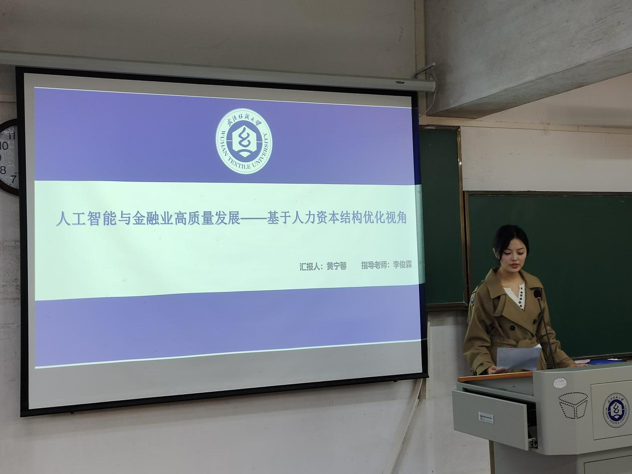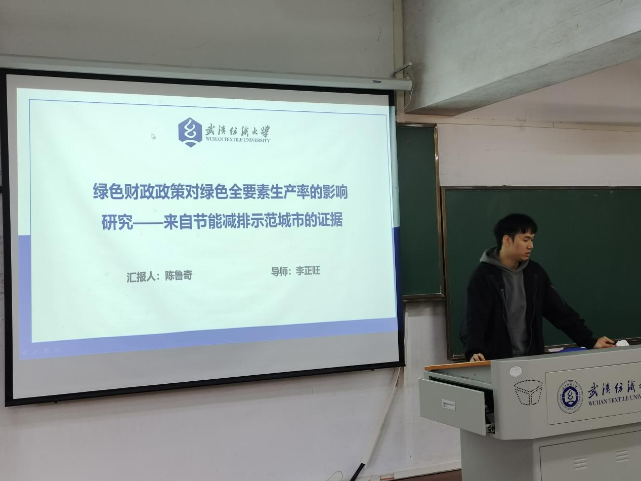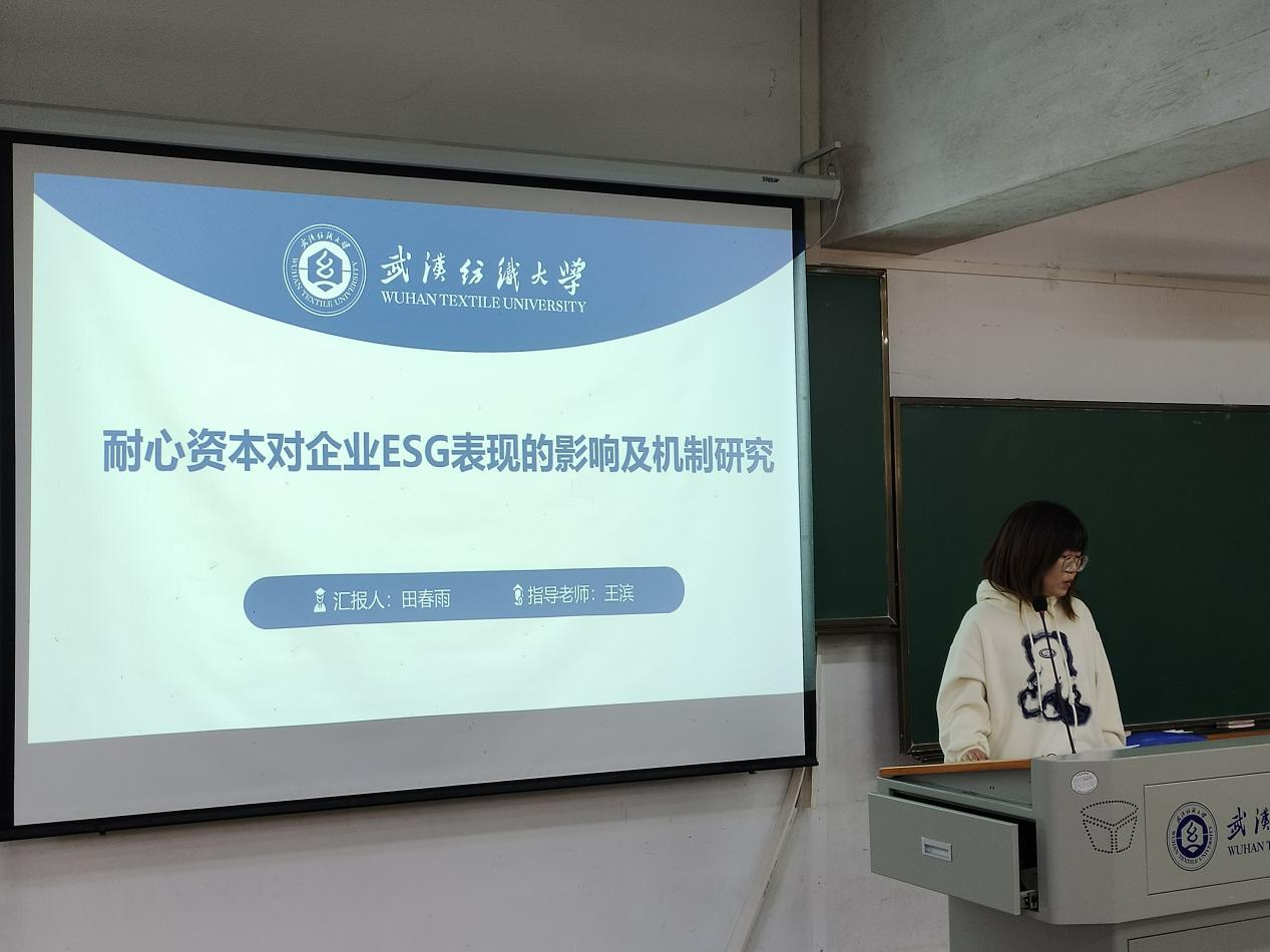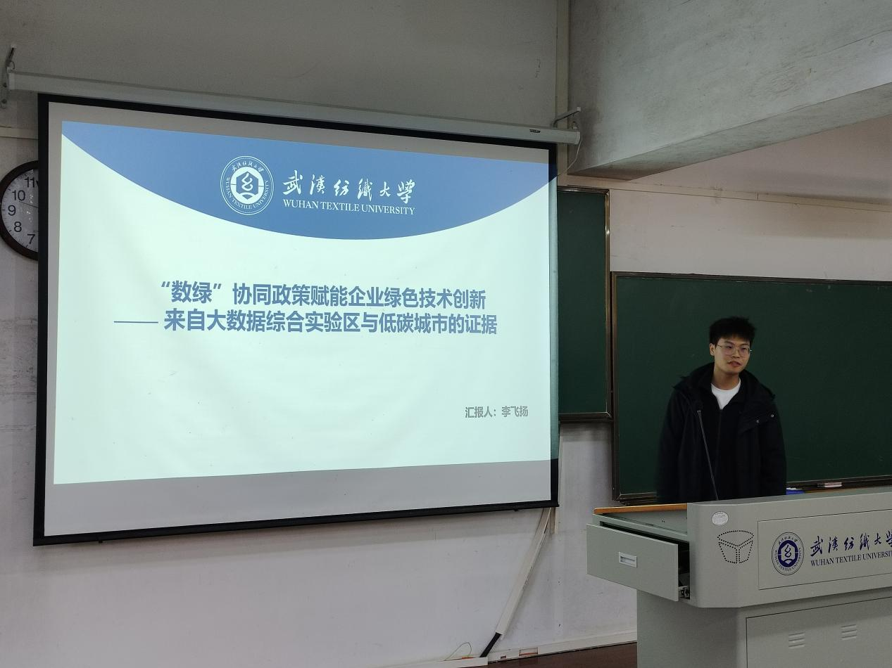 论坛现场,五位主讲同学围绕各自研究方向分享了学术成果。黄宁馨同学以《人工智能与金融业高质量发展——基于人力资本结构优化视角》为题,聚焦金融业转型与人工智能融合的时代背景,深入剖析人力资本结构优化在二者协同发展中的中介作用与实践路径。陈鲁奇同学带来《绿色财政政策对绿色全要素生产率的影响研究——来自节能减排示范城市的证据》的报告,基于节能减排示范城市的实证数据,系统探讨绿色财政政策对绿色全要素生产率的赋能效应与异质性特征。田春雨同学围绕《耐心资本对企业ESG表现的影响及机制研究》展开论述,从耐心资本的特性出发,揭示其影响企业环境、社会及治理表现的内在逻辑与传导机制。李飞扬同学以《“数绿”协同政策赋能企业绿色技术创新——来自大数据综合实验区与低碳城市的证据》为题,结合双重政策试点场景,实证分析“数字+绿色”协同政策对企业绿色技术创新的驱动效果与实践价值。邓雨晴同学聚焦跨国并购与企业创新的关联,以《价值链延伸型跨国并购对企业创新的影响研究》为主题,探究价值链延伸视角下跨国并购对企业创新能力提升的作用机理与边界条件。