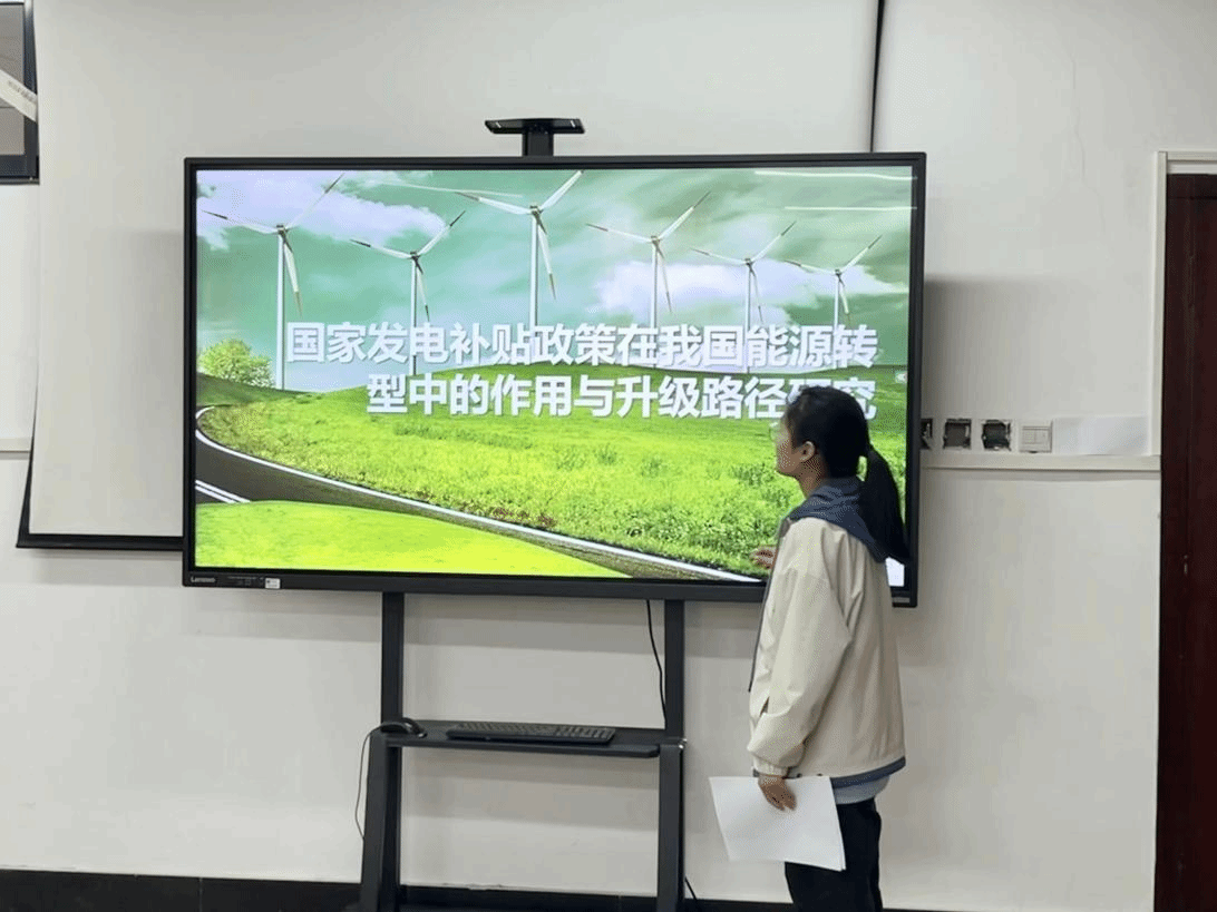 金融科技12201班罗巧以《国家发电补贴政策在我国能源转型中的作用与升级路线研究》为题,结合我国变革电力补贴制度、电力市场不断开放、能源结构逐步优化的背景,提出“发电补贴政策有效地推动了能源技术的转型和创新”“发电补贴政策不利于企业可持续发展”等研究假设,通过一系列实证分析,为我国能源经济转型发展、新能源发电企业创新发展提供了自己的见解。