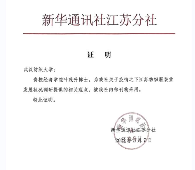 团队教师依托公司纺织行业特色优势,积极参与政府部门针对纺织产业规划方案的政策咨询,团队成果呈现出“井喷”态势,提升了公司社会影响力。以纺织贸易与产业政策科研团队为例,团队带头人叶茂升立足我国纺织服装产业发展,在产业规划和决策咨询研究方面取得了一系列有重要经济社会价值的高水平研究成果。2021年4月,他在新华社《内参要报》上发表的关于新疆棉问题的研究观点引起武汉市领导的关注和批示,受邀就新疆棉事件对武汉纺织服装行业产生的影响及有关问题进行深入研究,研究成果获得武汉市商务局的高度评价;2021年5月,叶教授作为纺织产业政策研究专家受邀参加省经信厅组织的湖北省纺织产业链链长制工作方案编制的专家咨询会,其针对纺织产业链发展的调研成果被部分吸收转化为湖北省纺织产业链链长制行动方案的相关政策;2022年6月,叶教授作为核心专家成员参与编制《仙西服装产业集聚区五年发展规划(2022-2026年)》,该规划被当地政府评价“站位高、谋划深、措施实,既顺应了产业发展大势,也符合仙桃发展实际,体现了前瞻思维和专业水准,为仙桃纺织服装产业高质量发展进一步理清了思路、指明了方向”。