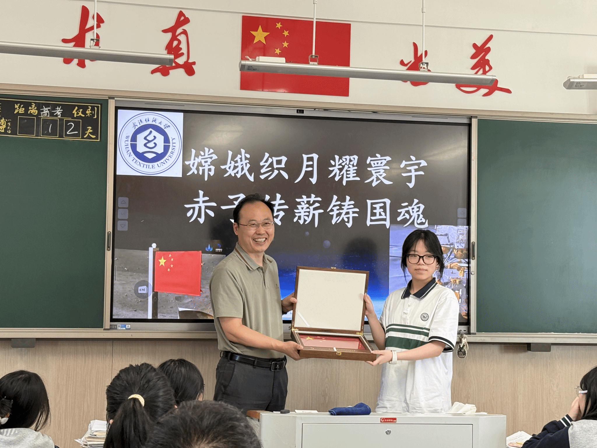6月28日,刘园美走进老师和员工中,以《黄鹤楼下人文韵千年流淌 纺大园中月国旗九天飘扬》为题为该校师生带来了一堂生动的跨学科人文讲座。讲座中,刘园美生动讲解历史悠久的黄鹤楼的人文韵味,也讲述了纺大月面国旗的历史意义、科技背景、研发历程,还和该校员工们进行了互动交流。