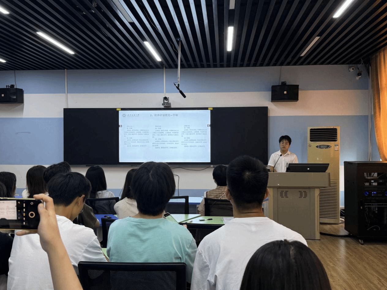 尤为值得一提的是,23级金融专硕班级的学习委员裴硕同学以其独到的视角和扎实的实践经验,为在座同学呈现了一场生动的“学海导航”。他建议在参考公司提供的培养方案基础上,结合自身兴趣与职业规划,精心规划每一学期的课程选修与研究方向,确保学习路径既符合学术要求又贴近个人发展需求。