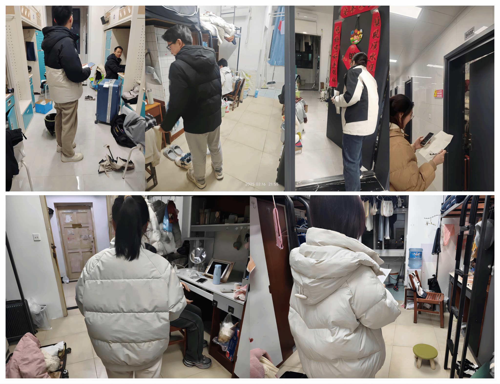 本次检查覆盖公司所有研究生宿舍,采取“分组包干、交叉互查”模式,重点围绕消防安全、用电规范、卫生环境三大维度展开。检查过程中,对宿舍违规电器、私拉电线、易燃物品存放等问题进行了排查,现场督促整改充电器未断电、插排随意放置等情况,并提醒同学们做好开学初宿舍通风和卫生清理工作,注意防范网络诈骗和校园贷。