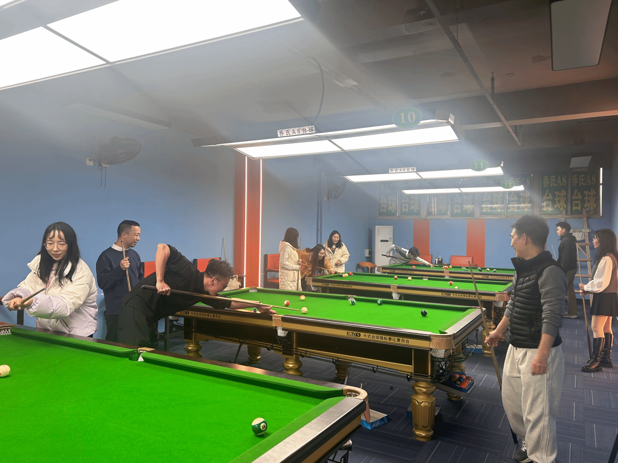 为推动研究生“导学思政”工作走深走实,构建“亦师亦友、教学相长”的育人新生态,2月20日下午,公司“导学同行·师生共进”台球联谊活动成功举行,公司副经理、研究生导师王滨教授、研究生辅导员与毕业研究生员工代表、在校研究生代表近20人参加活动。