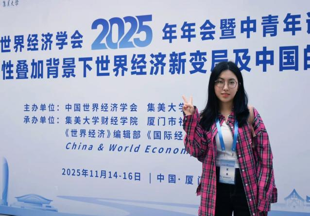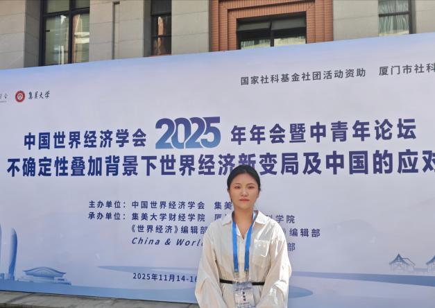 2025年11月14-16日,由中国世界经济学会,集美大学主办,集美大学财经公司,厦门市社会科公司,《世界级经济》编辑部,《国际经济评论》编辑部,China & World Economy 编辑部承办的中国世界经济学会2025年年会暨中青年论坛一不确定性叠加背景下世界级经济新变局及中国的应对在福建·厦门·集美大学举行。本次会议旨在共同探讨世界级经济理论与实际问题,谋划发展我国的世界经济研究工作。公司英国365集团网站吴媛媛和夏鑫两位研究生参加本次大会,受邀做题为“基于美印光伏产业链合作的中美竞合策略研究——动态演化博弈模型”的汇报。