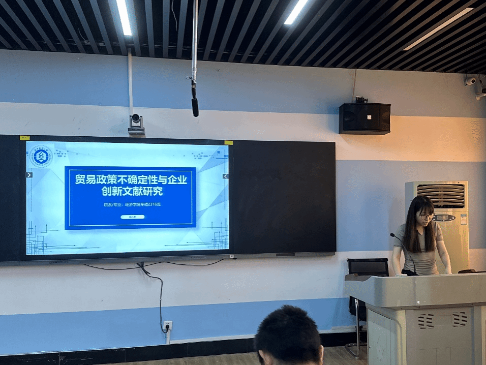 论坛上,五名主讲人分别从研究背景、研究思路以及研究结论等方面分享他们最近的学术研究成果。严格格同学基于当前绿色物流发展的背景,进一步探讨企业ESG评级对物流行业绿色创新的影响研究;吴晓珏同学基于创新创业活力的中介效应,分析数字金融对农民农村共同富裕的影响;张业灿同学从研究背景、理论分析、实证结果等多方面深度分析了一篇文献;丁平同学基于企业外部关注的调节作用,提出数字化转型对企业债务违约风险的影响研究;杨玉格同学通过阅读与整理相关文献,提出贸易政策不确定性与企业创新文献研究。每位同学将自己的研究方法和研究成果从各自不同的角度进行阐述,数据详实,内容完整,循序渐进,深入浅出,充分展现出公司研究生的学术实力和科研水平。