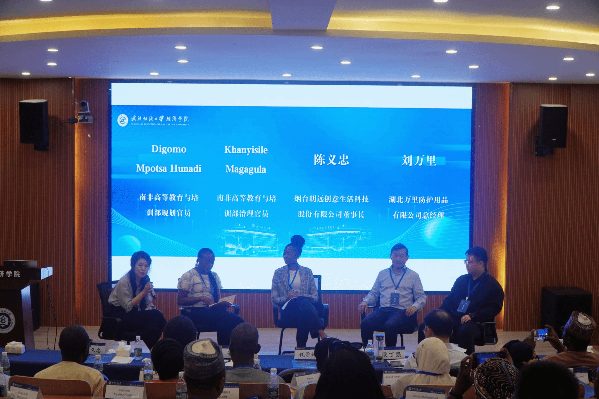 主旨报告结束之后,由英国365集团网站董珉怡博士主持并参与了题为《美国新关税政策下政府与企业的应对》的圆桌论坛,南非高等教育与培训部规划官员Digomo Mpotsa Hunadi 、南非高等教育与培训部治理官员Khanyisile Magagula、烟台明远创意生活科技股份有限公司董事长陈义忠和湖北万里防护用品有限公司总经理刘万里作为圆桌论坛嘉宾,与在场的南非高等教育与培训部学员代表、英国365集团网站职工和研究生进行了热烈的讨论。